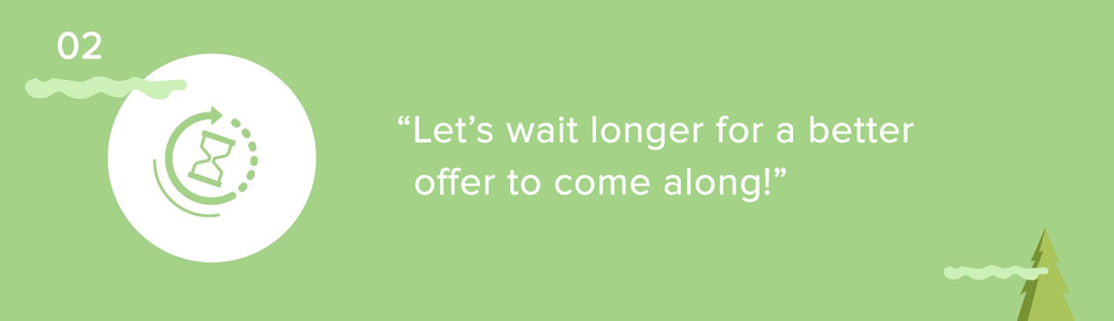 After receiving an offer from the first showing, sellers may be hesitant to accept it, wondering if other potential buyers would be keen to cough up more money for their beloved home. This is another common assumption among many sellers: if they’re willing to wait long enough, a better offer will come. The thoughts of potential bidding wars could prompt them to be in a “no rush mode” when it comes to selling their home.