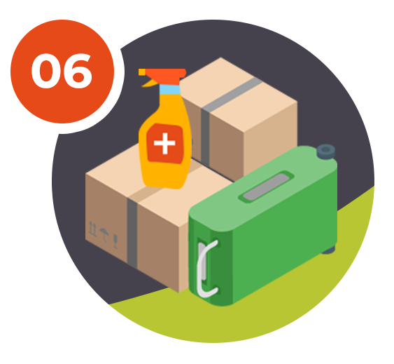 7. Disinfect as you pack and after unpacking your belongings.
